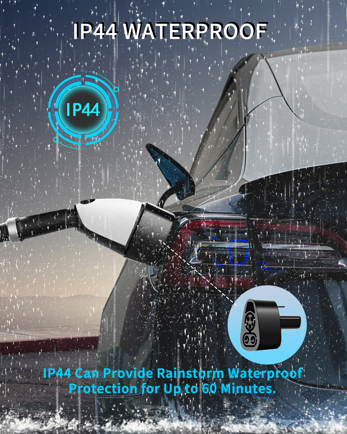 Tesla to CCS Adapter is rated up to 220 kW and 400 Amp. (Note: Charge rate also depends on the specifications of the charge point and the battery level of your Tesla.) IP55 protects your car and electrify america tesla adapter.